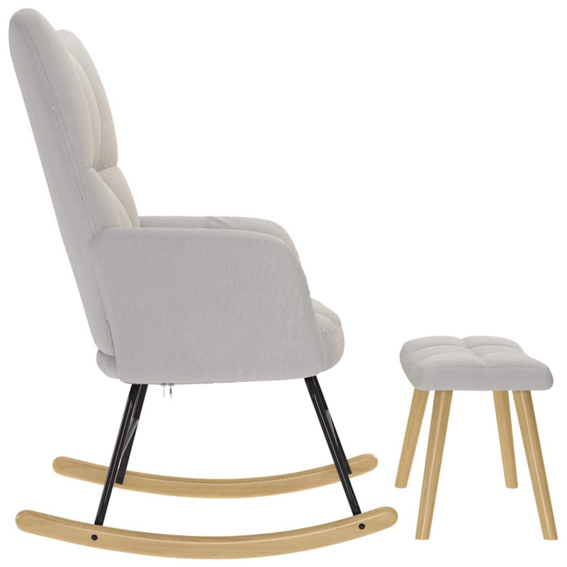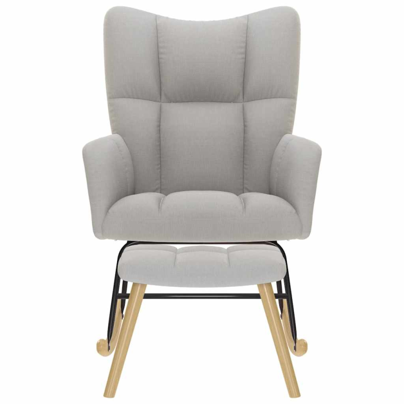 Suchen Sie nach einem Stuhl, in dem Sie sich nach einem anstrengenden Tag vollkommen entspannen können? Dieser bequeme Schaukelstuhl mit Fußhocker ist die perfekte Wahl! Weiches und strapazierfähiges Material: Polyestergewebe fühlt sich weich an, ist atmungsaktiv sowie strapazierfähig und sorgt so für höchsten Komfort und Behaglichkeit.Stabiles und stabiles Gestell: Der Rahmen aus Holz und Metall sorgt für Robustheit und Stabilität.Komfortables Sitzgefühl: Der Sessel kommt mit der dick gepolsterten Sitz- und Rückenlehne sowie Armlehnen für hohen Komfort.Sanfte und sanfte Schaukelbewegung: Der Schaukelstuhl bietet eine sanfte, sanfte Schaukelbewegung, die eine beruhigende Wirkung erzeugt, die Ihnen hilft, sich zu entspannen.Vielseitiger Fußhocker: Der Hocker ist vielseitig einsetzbar und dient als bequeme Fußstütze, wenn Sie sich auf dem Stuhl zurücklehnen, oder als zusätzlicher Sitz.