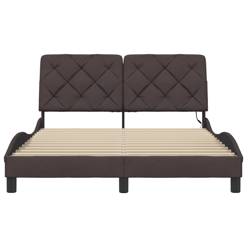 Bettgestell mit LED ohne Matratze Dunkelbraun 120x200 cm Stoff