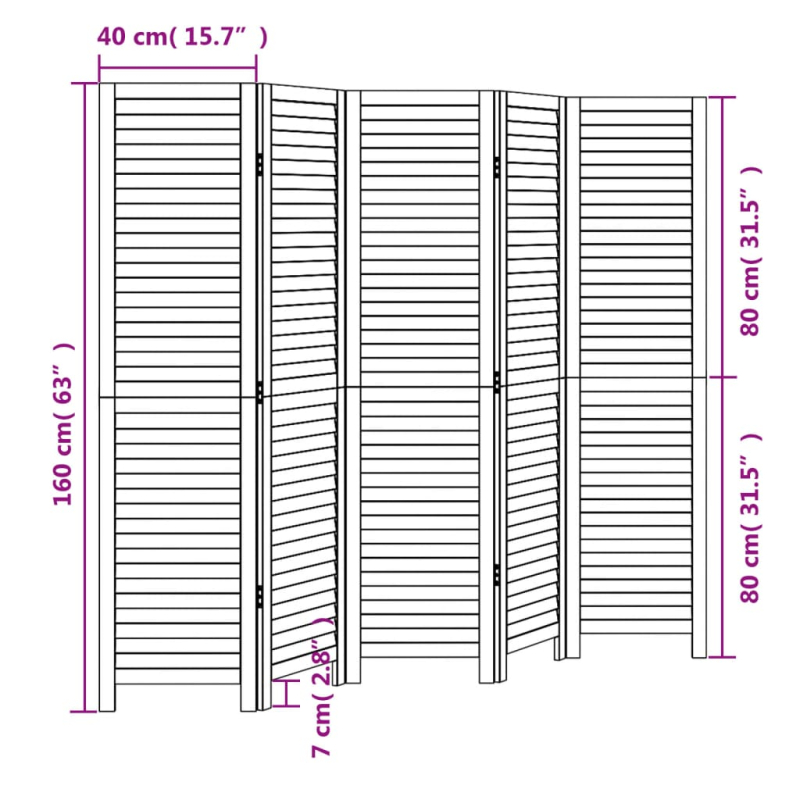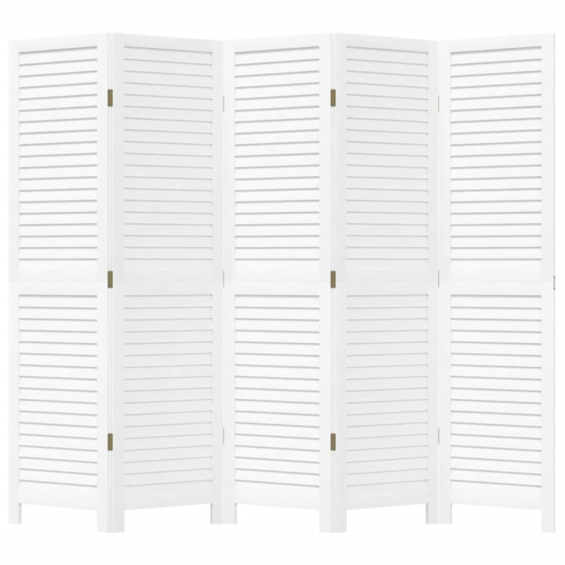 5-tlg. Raumteiler Weiß Massivholz Paulownia