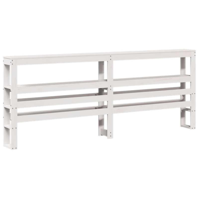 Genießen Sie einen erholsamen Schlaf in diesem Holzbett! Es wird eine praktische und dekorative Ergänzung zu Ihrem Interieur sein. Massives Kiefernholz: Massives Kiefernholz ist ein wunderschönes Naturmaterial. Kiefernholz weist eine gerade Maserung auf und die Aststellen verleihen dem Material seine charakteristische, rustikale Optik.Stabil: Der Holzrahmen sorgt für Robustheit und Stabilität. Robuste Latten: Die Sperrholzlatten sorgen für eine gute Gewichtsverteilung und auch dafür, dass die Matratze bei jeder Bewegung Ihres Körpers während des Schlafes an Ort und Stelle bleibt.Vielseitiges Kopfteil: Dieses Bettgestell ist mit einem Kopfteil versehen, das als komfortable Rückenstütze beim Lesen oder Fernsehen und gleichzeitig als dekoratives Element dient.Reichlich Stauraum: Dieses elegante Kopfteil verfügt über zwei praktische Ablagen, die reichlich Stauraum bieten, um wichtige Sachen nachts griffbereit zu halten. Gut zu wissen:Bei diesem Bett ist keine Matratze im Lieferumfang enthalten. Wir bieten jedoch eine große Auswahl an Matratzen an. Du kannst in unserem Shop nach einer passenden Matratze suchen.