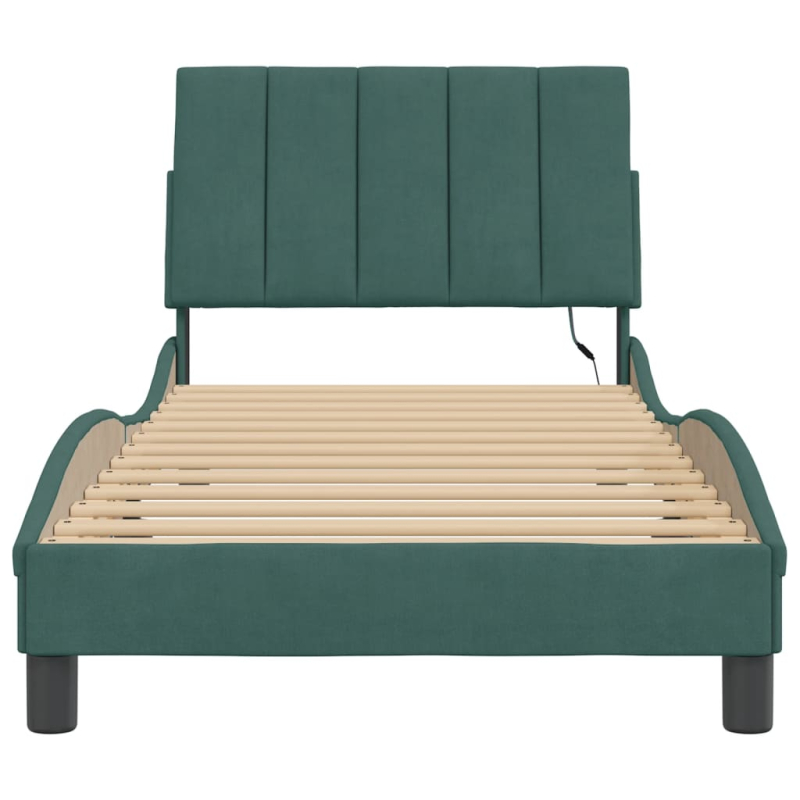 Dieses Bettgestell mit LED-Leuchten sorgt für eine erholsame Nachtruhe! Es stellt eine einladende Ergänzung zu jedem Schlafzimmer dar. Weicher Samt: Samt ist ein weicher und bequemer Stoff, der sich angenehm auf der Haut anfühlt.Sperrholzlatten: Die Sperrholzlatten sorgen für eine gute Gewichtsverteilung und auch dafür, dass die Matratze bei jeder Bewegung deines Körpers während des Schlafes an Ort und Stelle bleibt.Hervorragende Unterstützung: Das Bett-Kopfteil bietet dir eine hervorragende Unterstützung, während du im Bett sitzt, um zu lesen oder fernzusehen.Bunter LED-Streifen: Die farbenfrohen LED-Leuchten bringen das Schlafzimmer zum Leuchten! Die Klettverschlüsse auf der Rückseite des Kopfteils können zur Befestigung der LED-Leuchten verwendet werden.Wellenförmiges Seitendesign: Das stilvolle und raffinierte Design in Wellenform verleiht deiner Einrichtung eine moderne und elegante Note und macht das Bettgestell zum Mittelpunkt deines Schlafzimmers. Gut zu wissen:Bei diesem Bett ist keine Matratze im Lieferumfang enthalten. Wir bieten jedoch eine große Auswahl an Matratzen an. Du kannst in unserem Shop nach einer passenden Matratze suchen.Das Produkt verfügt über einen USB-Anschluss, für den eine zertifizierte 5V-USB-Stromquelle erforderlich ist (nicht im Lieferumfang enthalten).