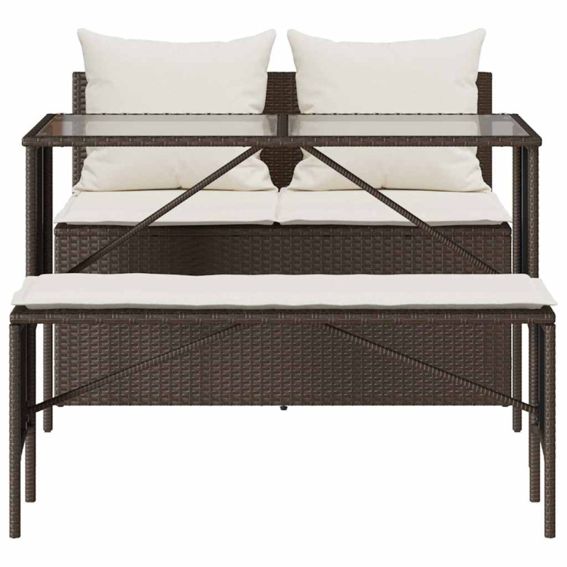 Diese Garten-Essgruppe ist eine ideale Wahl für Mahlzeiten im Freien oder einfach nur zum Entspannen im Garten, Hinterhof oder auf der Terrasse. Langlebiges Material: PE-Rattan, auch als Poly Rattan bekannt, ist ein robustes, pflegeleichtes synthetisches Material, das die Optik von natürlichem Rattan aufweist. Es kennzeichnet sich durch ein geringes Eigengewicht und lässt sich einfach reinigen. Aufgrund seiner Haltbarkeit und Witterungsbeständigkeit wird es häufig bei der Herstellung von Gartenmöbeln verwendet.Tischplatte aus Glas: Die Tischplatte des Gartentisches besteht aus starkem und langlebigem Hartglas, sodass sie leicht mit einem feuchten Tuch gereinigt werden kann und deinem Außenbereich einen Hauch von Eleganz verleiht.Bequemes Sitzerlebnis: Dieser Gartensessel mit dick gepolsterten Kissen bietet ein angenehmes Sitzgefühl.Abnehmbarer und waschbarer Bezug: Diese Sitzkissen verfügen über abnehmbare Bezüge für einfaches Waschen und Pflegen.Robuster und stabiler Rahmen: Dank des pulverbeschichteten Stahlrahmens ist das Möbelstück robust, stabil und für den täglichen Einsatz im Außenbereich geeignet. Gut zu wissen:Wir empfehlen dir, deine Gartenmöbel mit einer wasserdichten Hülle zu schützen, um lange Zeit eine ansprechende Optik aufzuweisen.