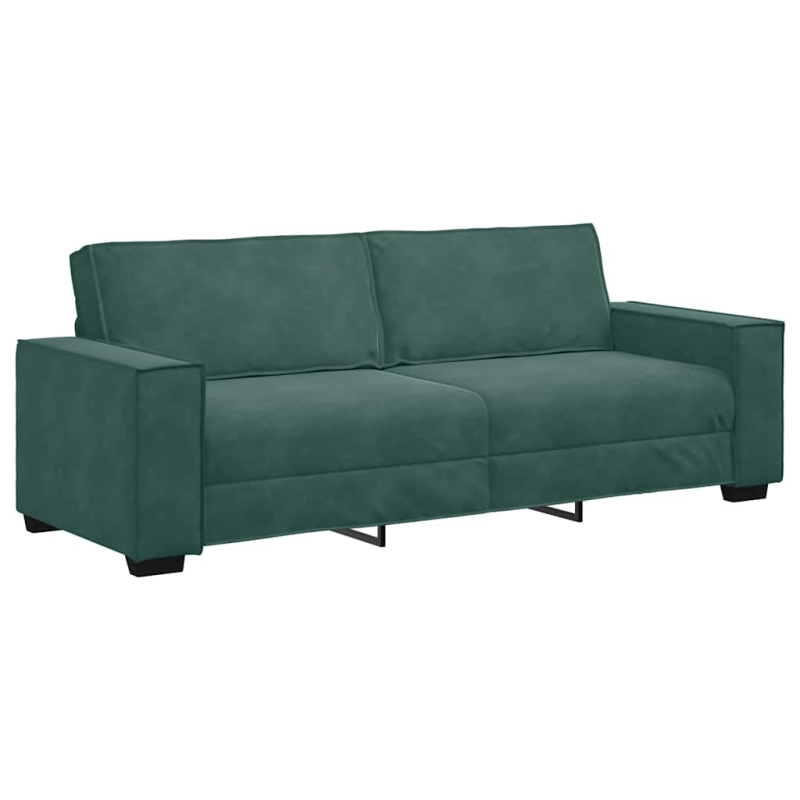 3-tlg. Sofagarnitur mit Kissen Dunkelgrün Samt