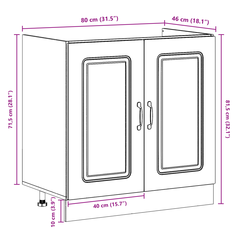 Dieser Spülenschrank ist ein stylisches Teil für jede moderne Küche. Er eignet sich perfekt für deine Spüle und verleiht deinem Raum mit seinem eleganten, beton-grauen Finish einen tollen Look. Er fügt sich super ins zeitgenössische Design ein und verbindet Funktionalität und Stil auf coole Weise. Das schlanke beton-graue Finish verleiht jeder Küche einen modernen Look und lässt sich leicht mit verschiedenen Stilen kombinieren. Diese schicke Farbe ergänzt nicht nur zeitgenössische Innenräume, sondern wird auch zum Blickfang. Mit viel Stauraum hält der Schrank deine wichtigen Küchenartikel ordentlich und sauber, für eine aufgeräumte Zone. Das geräumige Innere eignet sich super für Utensilien, Reinigungssachen und Küchengeräte. Hergestellt aus robustem Holzwerkstoff, ist der Schrank für den täglichen Gebrauch ausgelegt und behält seinen ansprechenden Look. Die glatte Oberfläche macht ihn pflegeleicht und langlebig. Höhenverstellbare Füße sorgen dafür, dass der Schrank auf allen Böden stabil steht und machen ihn super benutzerfreundlich. Diese Funktion ist wichtig für eine ordentliche Entwässerung und Nutzung. Dieser Spülenschrank ist nur für drinnen gedacht und somit der ideale Mittelpunkt für deine Küchenrenovierung. Sein modernes Design spricht Erwachsene an, die ihr Wohnumfeld verbessern wollen.