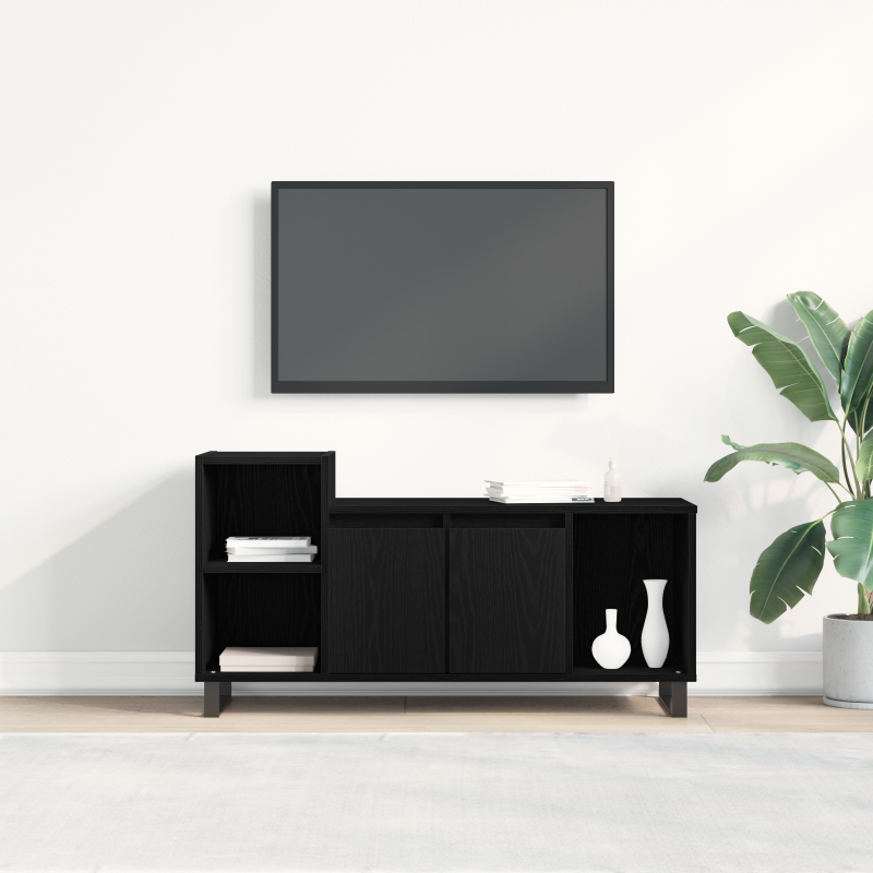Der moderne TV Stand aus schwarzer Eiche ist genau das Richtige für dein Wohnzimmer. Er wurde entwickelt, um deinen Fernseher und Mediengeräte zu halten und gleichzeitig einen stylischen Akzent zu setzen. Hergestellt aus hochwertigem Holzwerkstoff, hat er ein elegantes, mattes schwarzes Finish, das super mit zeitgenössischem Dekor harmoniert. Zudem sorgen die integrierten Regale und Schiebetüren dafür, dass dein Entertainment-Zeug ordentlich und griffbereit bleibt. Viel Stauraum: Mit vier geräumigen Fächern hält dieser Stand all deine Mediengeräte und Zubehör ordentlich und griffbereit – perfekt für ein aufgeräumtes Wohnzimmer. Stylisches Design: Der moderne Look besticht durch klare Linien und ein schlankes Profil, das in jedes zeitgenössische oder minimalistische Dekor passt. Robuste Materialien: Aus strapazierfähigem Holzwerkstoff mit luxuriösem mattem Finish, dieser Stand ist darauf ausgelegt, lange zu halten und seinen stylischen Look zu bewahren. Einfache Zugänglichkeit: Zwei Schiebetüren bringen Stil und erleichtern den Zugang, halten alles staubfrei und organisiert. Einfache Montage: Dieser TV Stand lässt sich leicht zusammenbauen – greif dir einfach einen Schraubendreher und hol dir einen Kumpel zur Hilfe. Ideal für alle, die ihre Wohnung schnell aufpeppen wollen.