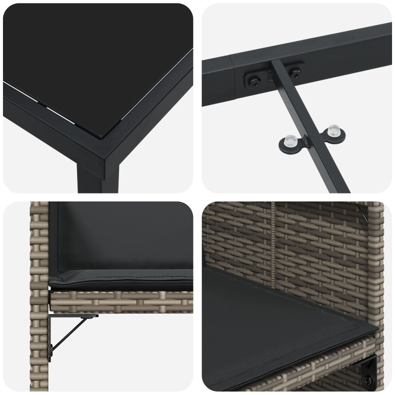 Das Set mit Gartensthlen und Kissen enthlt vier stylische Sthle, ideal fr deinen Garten, Balkon oder die Terrasse. Hergestellt aus robustem PE-Rattan, haben die Sthle eine schicke graue Farbe, die deine Outdoor-Dekoration aufpeppt. Die Kissen sind super bequem, perfekt fr lange Entspannung mit Familie und Freunden. Die klappbare Rckenlehne erleichtert das platzsparende Verstauen, ideal fr kleine Rume. Stabil genug fr bis zu 110 kg, sind sie perfekt fr Erwachsene. Die Reinigung ist ein Leichtes dank der abnehmbaren Kissenbezge. Mit Haltbarkeit, Komfort und Stil sind diese Gartensthle eine tolle Ergnzung, egal ob du drauen isst oder einfach nur chillst.