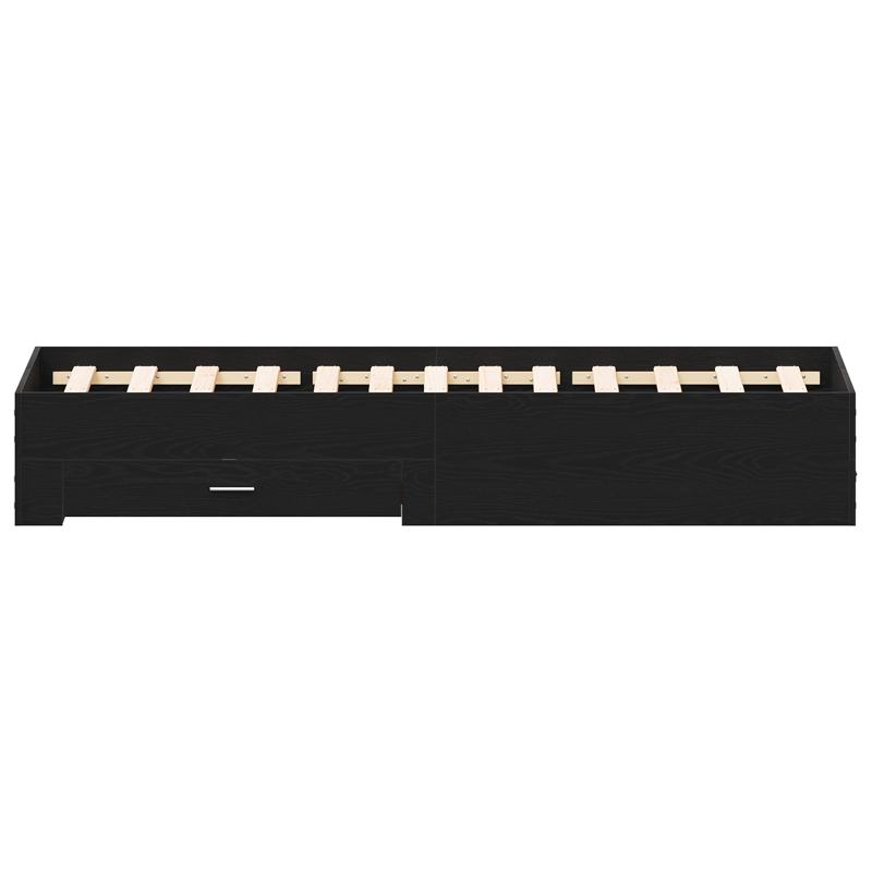 Dieses moderne Bettgestell aus schwarzer Eiche bringt frischen Wind in dein Schlafzimmer und kombiniert Funktionalität mit Stil. Entworfen für Erwachsene, ist es nicht nur schick, sondern bietet auch praktische Stauraumlösungen. Viel Stauraum: Das Design nutzt den Platz optimal mit vier großen Schubladen, ideal zum Verstauen von Bettwäsche, Kleidung und persönlichen Gegenständen, damit alles ordentlich bleibt. Robuste Bauweise: Hergestellt aus engineered wood und massiven Latten, ist dieses Gestell für den täglichen Gebrauch gemacht und eine solide Investition für dein Zuhause. Einfaches Design: Mit mattem Finish, klaren Linien und schlichtem Design hebt es die Schlafzimmerdekoration hervor und passt perfekt zu modernen bis minimalistischen Stilen. Einfach zusammenzubauen: Kommt mit klaren Anleitungen und braucht nur minimale Werkzeuge für den Aufbau, damit du schnell deinen neuen Raum genießen kannst. Hochwertige Textur: Die glatte Oberfläche und das lackierte Finish kombinieren Schönheit und Langlebigkeit, schützen vor Kratzern und Abnutzung über die Zeit.