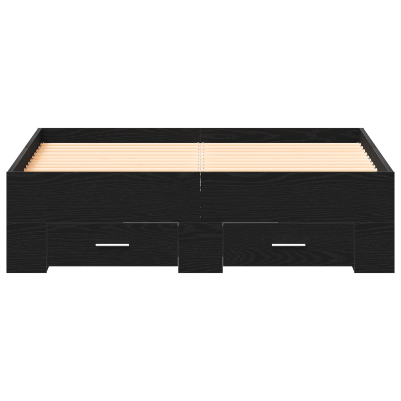 Das schwarze Eichenbettgestell ist ein cooles Möbelstück, das dein Schlafzimmer in einen modernen Rückzugsort verwandelt. Mit einem stylischen Look und nützlichen Funktionen ist es sowohl ein schickes Zentrum als auch ein praktischer Stauraum. Viel Stauraum: Die zwei großen Schubladen bieten ausreichend Platz für Kissen, Decken und andere Dinge, um dein Schlafzimmer ordentlich und sauber zu halten. Hochwertige Materialien: Hergestellt aus solidem Eichenholz, ist das Bettgestell robust und langlebig, was es zu einer soliden Investition für deinen Schlafbereich macht. Modernes Design: Die schlichte matte Oberfläche und die klaren Linien passen perfekt in moderne Einrichtungsstile und lassen es mühelos mit verschiedenen Schlafzimmerlooks verschmelzen. Einfache Pflege: Die glatte Oberfläche ist einfach zu reinigen – einfach ab und zu mit einem weichen, trockenen Tuch abstauben, damit es schick aussieht. Optimale Größe: Entwickelt für eine Standardmatratze von 120 x 190 cm, bietet dieses Bettgestell genug Platz für einen gemütlichen Schlaf und ist für bis zu zwei Personen geeignet.