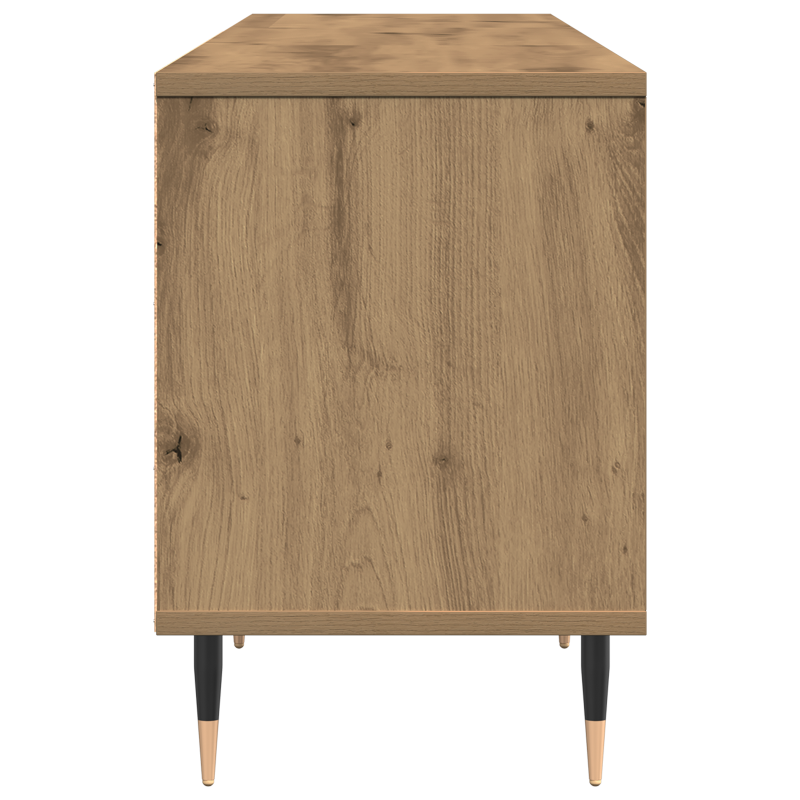 Dieser TV-Schrank bringt minimalistischen Charme mit modernem Touch. Er sorgt dafür, dass dein Raum warm und funktional bleibt. Er ist dafür gedacht, deinen Fernseher und Medien aufzunehmen und bringt gleichzeitig Stil in dein Wohnzimmer oder Heimkino. Viel Stauraum: Halte dein Wohnzimmer ordentlich mit vier eingebauten Regalen und Türen für all deine Bücher, Mediengeräte und Erinnerungsstücke. Schickes Design: Mit seiner glatten Artisan Eiche-Oberfläche sieht er toll aus. Vielseitige Nutzung: Passt zu Fernsehern jeder Größe und bringt Stil und Funktion an jeden Ort. Haltbare Verarbeitung: Hergestellt aus hochwertiger Spanplatte und solidem Holz für langanhaltenden Stil. Einfache Pflege: Ein schnelles Wischen mit einem trockenen Tuch reicht; verwende keine aggressiven Chemikalien.