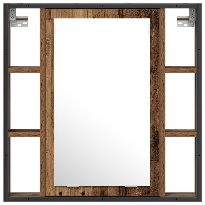 Dieser wandmontierte Badezimmerschrank verbindet Stil und Funktion mit seinem rustikalen Look aus altem Holz und bietet dir eine praktische Stauraumlösung. Ideal für alle, die einen Vintage-Touch lieben und gleichzeitig praktisch sein möchten – er hat viele Regale und einen großen Spiegel, perfekt für die morgendliche Vorbereitung und optimale Raumnutzung. Robust und Stabil: Hergestellt aus Holzwerkstoff und Metall, dieser Schrank ist für Langlebigkeit ausgelegt und für den täglichen Gebrauch geeignet. Er passt gut in ein belebtes Familienbadezimmer oder deinen ruhigen Bereich und erfüllt alle Stauraumbedürfnisse. Viel Stauraum: Mit mehreren Regalen und einem zentralen Schrank gibt es viel Platz, um deine Badezimmerutensilien ordentlich zu verstauen. Die durchdachte Anordnung ermöglicht einfachen Zugriff auf Toilettenartikel, wodurch deine täglichen Routinen einfacher werden. Rustikales Design: Der verwitterte Look und die natürlichen Texturen geben deinem Badezimmer einen rustikalen Touch. Es ist nicht nur ein Stauraum, sondern auch ein stylisches Element, das erdige, vintage Vibes mitbringt. Funktionale Wandmontage: Entwickelt zur Wandmontage, spart er Platz auf dem Boden und hält deine Sachen griffbereit. Ob über dem Waschbecken oder in einer Ecke versteckt, er hilft, dein Badezimmer ordentlich zu halten. Reflektierende Oberfläche: Der Spiegel bringt einen notwendigen Touch zur Körperpflege und zum Überprüfen deines Looks, verbessert die Funktionalität des Schranks und verleiht dem Badezimmer ein großzügiges Gefühl.