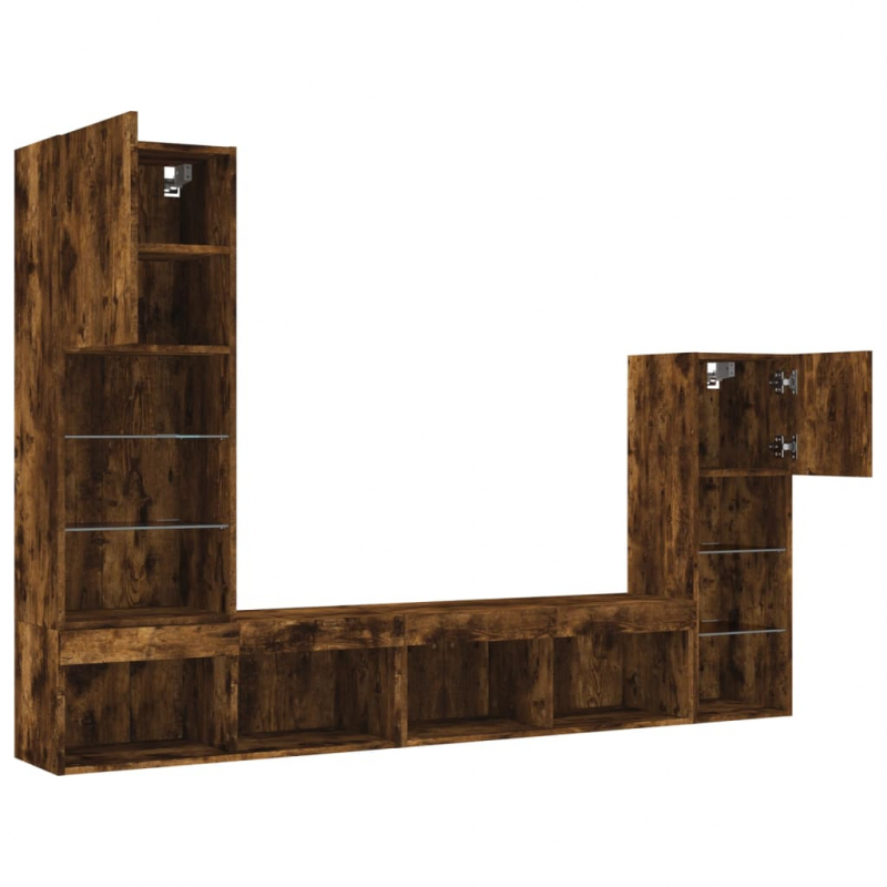 Diese TV-Wandschränke bieten eine perfekte Lösung, um zusätzlichen Stauraum in deinem Wohnraum zu schaffen und für Ordnung zu sorgen. Robustes Material: Holzwerkstoff ist ein Material von außergewöhnlicher Qualität mit glatter Oberfläche, das sich durch Festigkeit, Stabilität und Feuchtigkeitsbeständigkeit auszeichnet.RGB-LED-Leuchten: Die Wohnwand ist mit lebendigen RGB-LED-Leuchten ausgestattet. Mit verschiedenen anpassbaren Menüs kannst du die Farbe der Lichter mühelos wechseln und sie sogar auf automatische Anpassung einstellen. Diese LED-Leuchten unterstreichen nicht nur den modernen Look des TV-Wandschranks, sondern tragen auch zu seiner trendigen Optik bei.Wandmontage: Der TV-Schrank lässt sich an der Wand montieren, um zusätzlichen Stauraum zu schaffen. Auf diese Weise kannst du deine Bodenfläche maximieren und für Ordnung im Raum sorgen.Reichlich Stauraum: Das TV-Wandschrank-Set bietet reichlich Platz, um Bücher, DVDs, Zeitschriften, Medien und andere Alltagsgegenstände übersichtlich und griffbereit zu verstauen.Vielseitiges Design: Du kannst den Schrank als TV-Schrank verwenden oder ihn im Arbeitszimmer an der Wand montieren, um Utensilien oder andere Gegenstände bequem aufzubewahren. Zudem verwandelt er eine leere Wand sofort in ein Design-Element. Gut zu wissen:Schrauben und Dübel für die Innenseite der Wand sind nicht enthalten. Wir empfehlen dir, Schrauben und Dübel zu finden und zu verwenden, die speziell für deine Wände geeignet sind. Wenn du dir nicht sicher bist, kannst du dich an einen Fachmann wenden. Bitte lies und befolge jeden Schritt in der Anleitung.Das Produkt verfügt über einen USB-Anschluss, für den eine zertifizierte 5V-USB-Stromquelle erforderlich ist (nicht im Lieferumfang enthalten).
