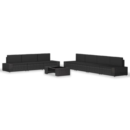 10-tlg. Garten-Lounge-Set Poly Rattan Schwarz