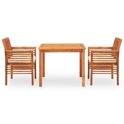 3-tlg. Garten-Essgruppe mit Auflagen Massivholz Akazie