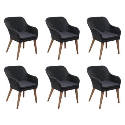 7-tlg. Garten-Essgruppe mit Auflagen Poly Rattan Schwarz