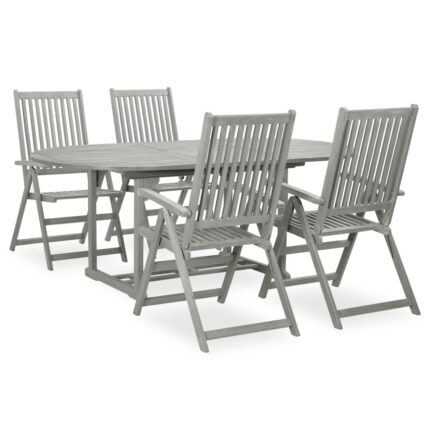 5-tlg. Garten-Essgruppe (150–200) x 100 cm Massivholz Akazie Grau