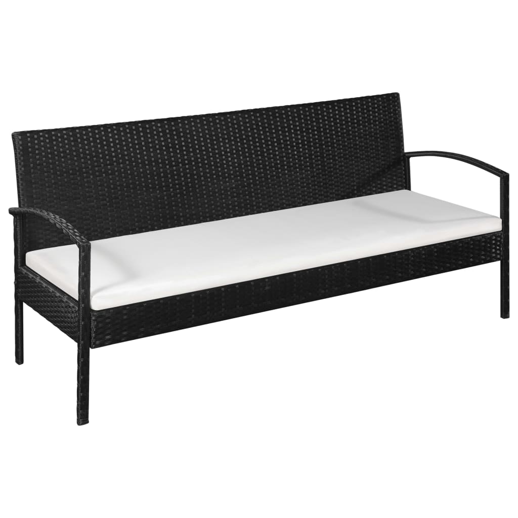 Gartensofa 3-Sitzer mit Kissen Grau Poly Rattan