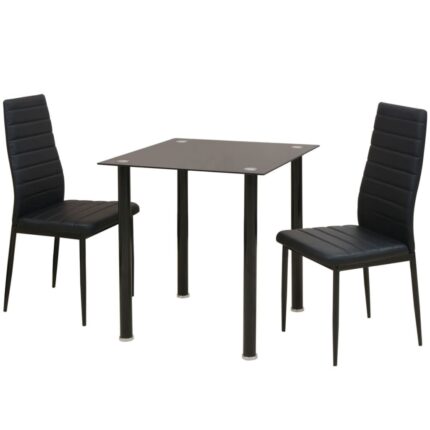 3-tlg. Essgruppe Esstisch mit Stühlen Schwarz