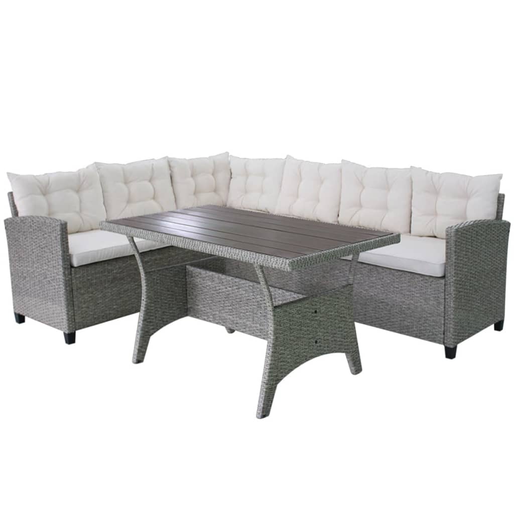 5-tlg. Garten-Essgruppe mit Auflagen Poly Rattan Beige
