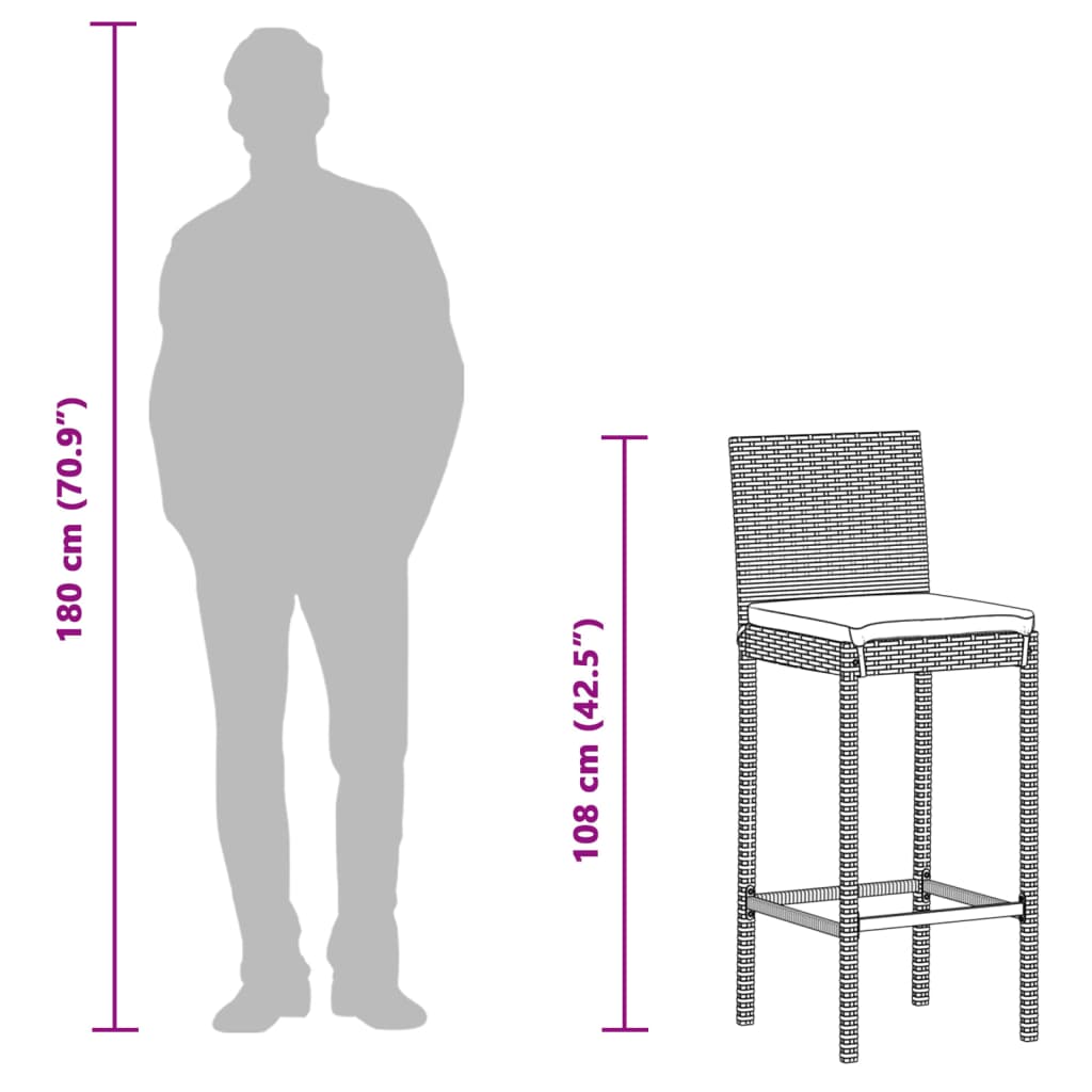 Mit seinem eleganten und modernen Design ist dieses Gartenbar-Set eine großartige Wahl zum Speisen oder Entspannen im Freien. Langlebiges Material: PE-Rattan, auch als Poly Rattan bekannt, ist ein robustes, pflegeleichtes synthetisches Material, das die Optik von natürlichem Rattan aufweist. Es kennzeichnet sich durch ein geringes Eigengewicht und lässt sich einfach reinigen. Aufgrund seiner Haltbarkeit und Witterungsbeständigkeit wird es häufig bei der Herstellung von Gartenmöbeln verwendet. Aus leichtem PE-Rattan gefertigt, sind die Barhocker robust und lassen sich leicht umstellen. Stabile Tischplatte: Massives Akazienholz ist ein schönes Naturmaterial. Akazienholz ist ein tropisches Hartholz, das dicht, robust und langlebig ist. Aus massivem Akazienholz gefertigt, ist dieser Bartisch robust und stabil. Darauf finden Snacks, Getränke und Lieblingsdekorationen Platz. Bequemes Sitzerlebnis: Die dick gepolsterten Sitzkissen und die eingebauten Fußstützen sorgen für zusätzlichen Sitzkomfort. Abnehmbarer und waschbarer Bezug: Diese Sitzkissen verfügen über abnehmbare Bezüge für einfaches Waschen und Pflegen. Gut zu wissen:Wir empfehlen dir, deine Gartenmöbel mit einer wasserdichten Hülle zu schützen, um lange Zeit eine ansprechende Optik aufzuweisen.
