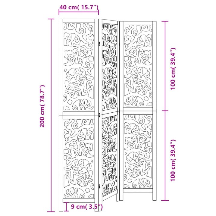 3-tlg. Raumteiler Handgeschnitzt 120×165 cm Mango Massivholz