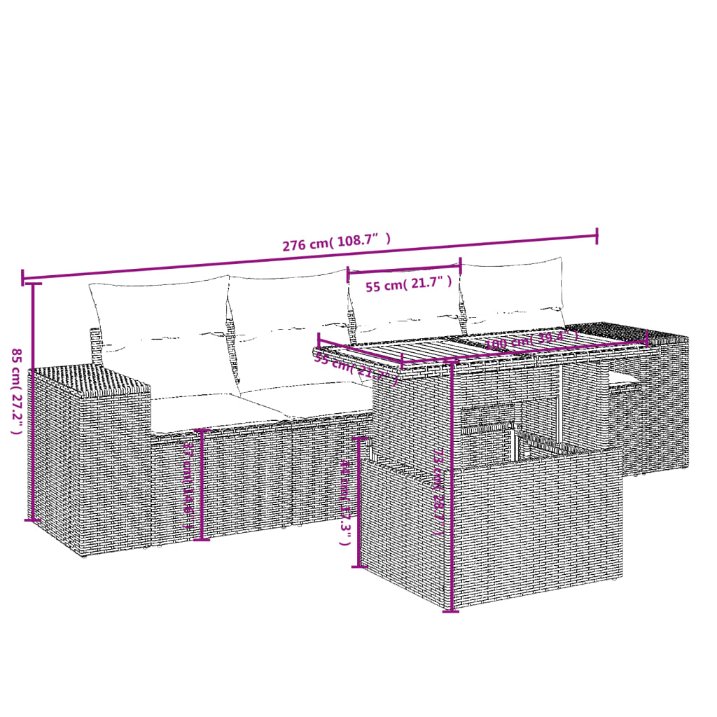 5-tlg. Garten-Sofagarnitur mit Kissen
