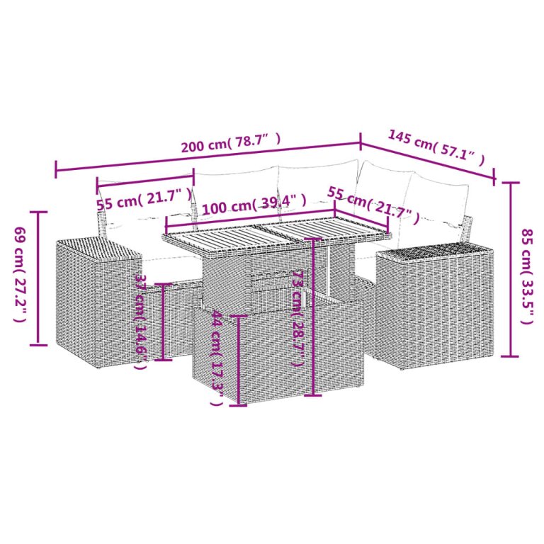 5-tlg. Garten-Sofagarnitur mit Kissen