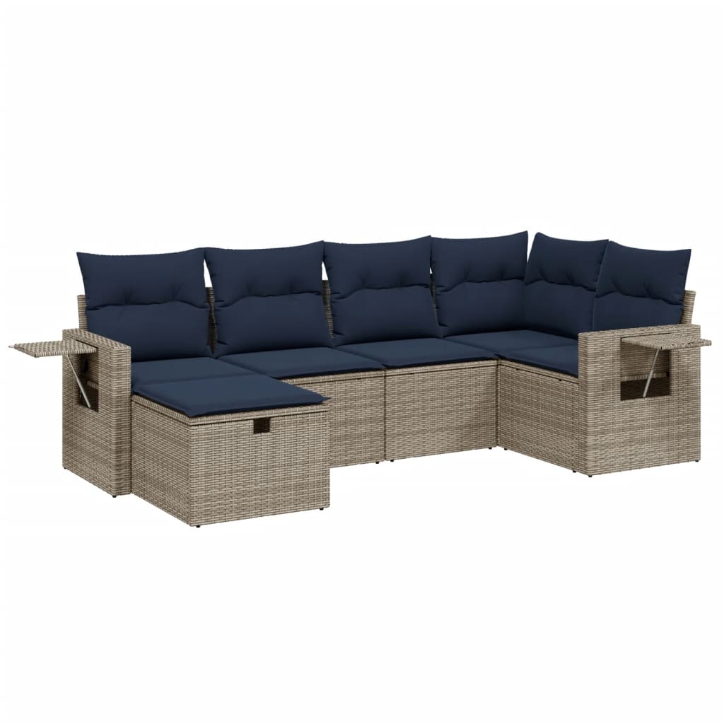 7-tlg. Garten-Sofagarnitur mit Kissen Beige Poly Rattan