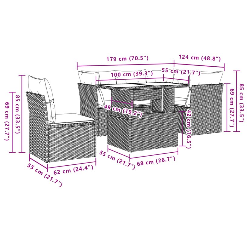 6-tlg. Garten-Sofagarnitur mit Kissen