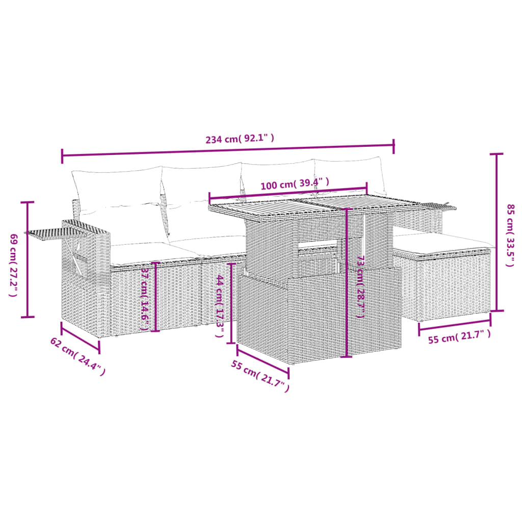 6-tlg. Garten-Sofagarnitur mit Kissen