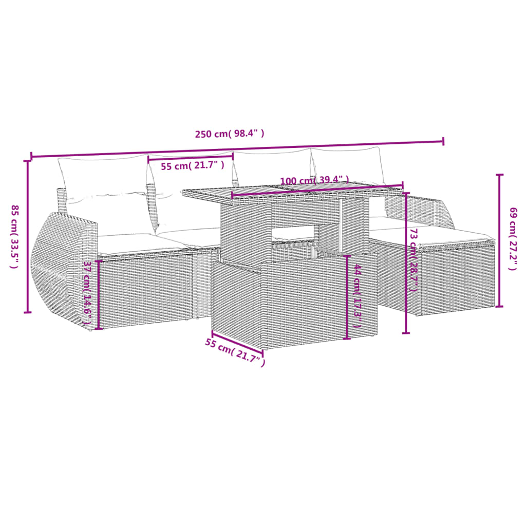 Diese Garten-Sofagarnitur ist die perfekte Ergänzung zu deinem Garten, deiner Terrasse oder deinem Innenhof. Sie bietet einen bequemen und einladenden Platz, um mit Familie und Freunden zu plaudern oder dich einfach nur zu entspannen und das Leben im Freien zu genießen.Langlebiges Material: PE-Rattan, auch als Poly Rattan bekannt, ist ein robustes, pflegeleichtes synthetisches Material, das die Optik von natürlichem Rattan aufweist. Es kennzeichnet sich durch ein geringes Eigengewicht und lässt sich einfach reinigen. Aufgrund seiner Haltbarkeit und Witterungsbeständigkeit wird es häufig bei der Herstellung von Gartenmöbeln verwendet.Stauraum mit wasserfestem Beutel: Jedes Gartensofa verfügt über ein Staufach unter der Sitzfläche, das mit einem wasserfesten Beutel zur Aufbewahrung von Kissen, Spielzeug und anderen Gegenständen versehen ist. Die Kissen sind mit Bezügen versehen und lassen sich mit Klettverschlüssen fest und sicher an den Sofas befestigen.Abnehmbarer und waschbarer Bezug: Diese Sitzkissen verfügen über abnehmbare Bezüge für einfaches Waschen und Pflegen.Modulares Design: Dank des modularen Designs lassen sich die Gartenmöbel völlig flexibel und einfach umstellen, um deinen Außenbereich ganz individuell zu gestalten.Gut zu wissen:Wir empfehlen dir, deine Gartenmöbel mit einer wasserdichten Hülle zu schützen, um lange Zeit eine ansprechende Optik aufzuweisen.