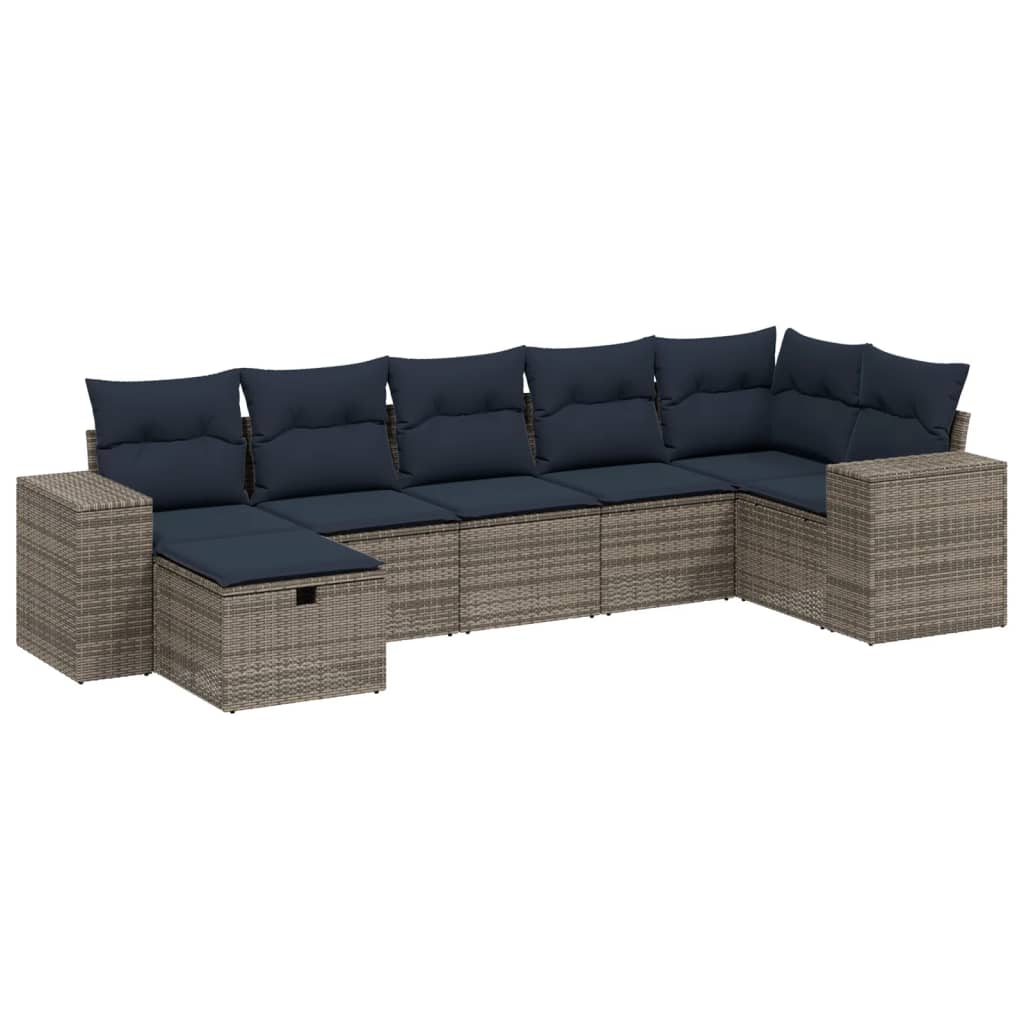 7-tlg. Garten-Sofagarnitur mit Kissen Grau Poly Rattan