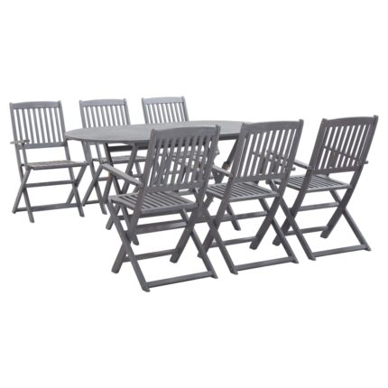 7-tlg. Garten-Essgruppe Massivholz Akazie Grau