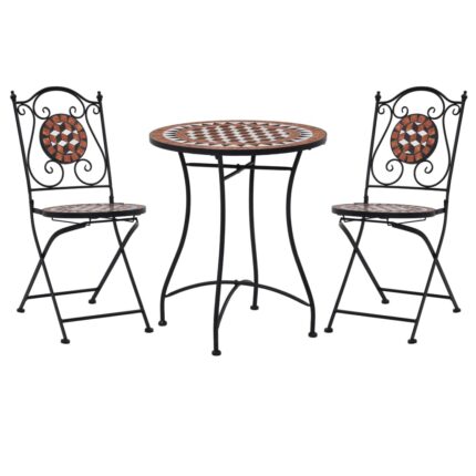 3-tlg. Bistro-Set Mosaik Keramik Terrakotta