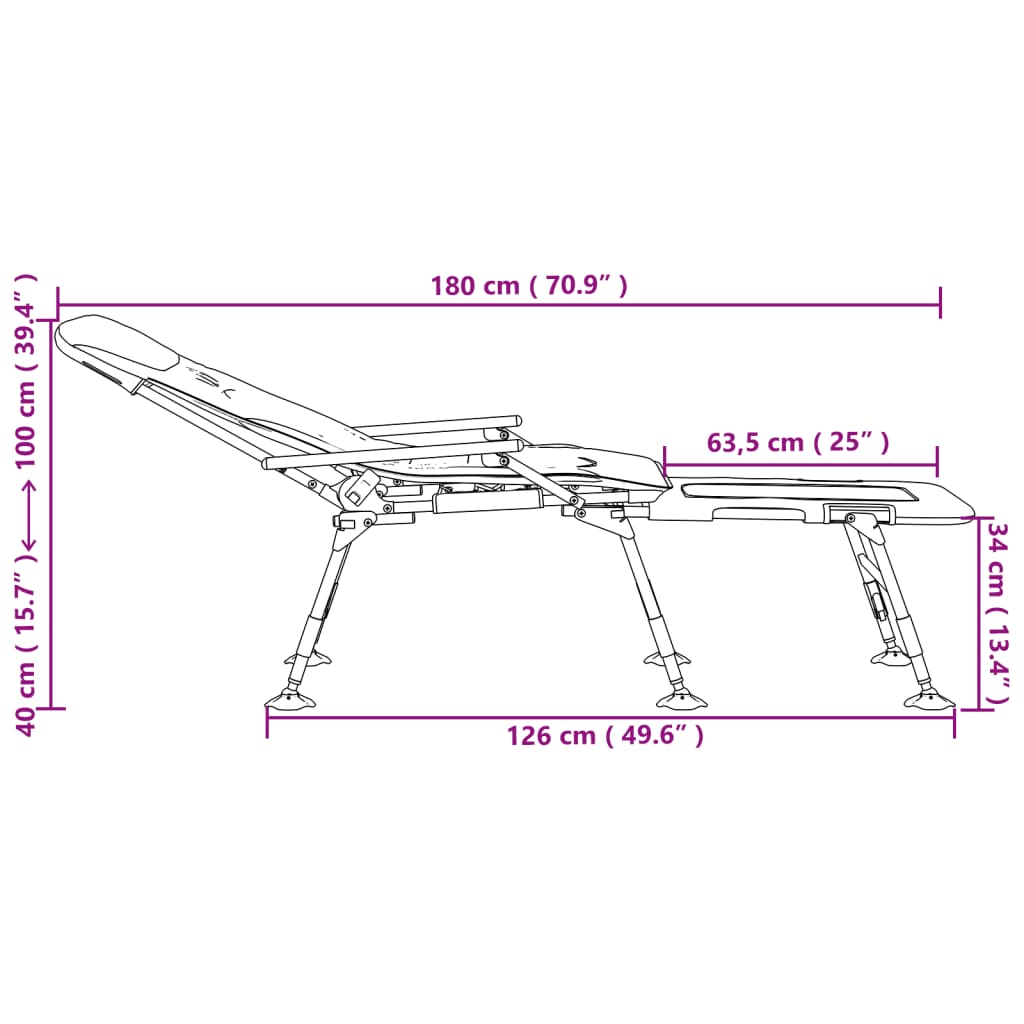 Diese klappbare Angelliege weist ein optisch ansprechendes und praktisches Design auf und eignet sich daher ideal für verschiedene Aktivitäten im Innen- und Außenbereich. Langlebig und robust: Die Angelliege besteht aus Stahl mit Pulverbeschichtung und ist daher robust und auf eine lange Lebensdauer ausgelegt.Praktisches Design: Die verstellbaren Beine der Liege sind mit Schlammkappen ausgestattet, die eine bequeme Nutzung selbst auf unebenem Gelände gewährleisten und das Einsinken in weichen Boden verhindern. Zudem lässt sich das Fußteil abnehmen und als separater Angelhocker verwenden.Bequem und praktisch: Die Fischerliege ist mit einer Schaumstoffpolsterung ausgestattet, die gut isoliert, sich leicht reinigen lässt und gleichzeitig Sitzkomfort bietet. Zudem lässt sich die Rückenlehne von 0 bis 180 Grad verstellen, wodurch Rücken und Oberschenkel entlastet werden, um eine bequeme Sitz- oder Liegeposition den ganzen Tag über zu genießen.Vielseitig einsetzbar: Dieses Angelbett lässt sich zusammenklappen und daher leicht verstauen und transportieren, was es zu einer idealen Wahl für Angeln, Campen oder andere Aktivitäten im Freien macht.