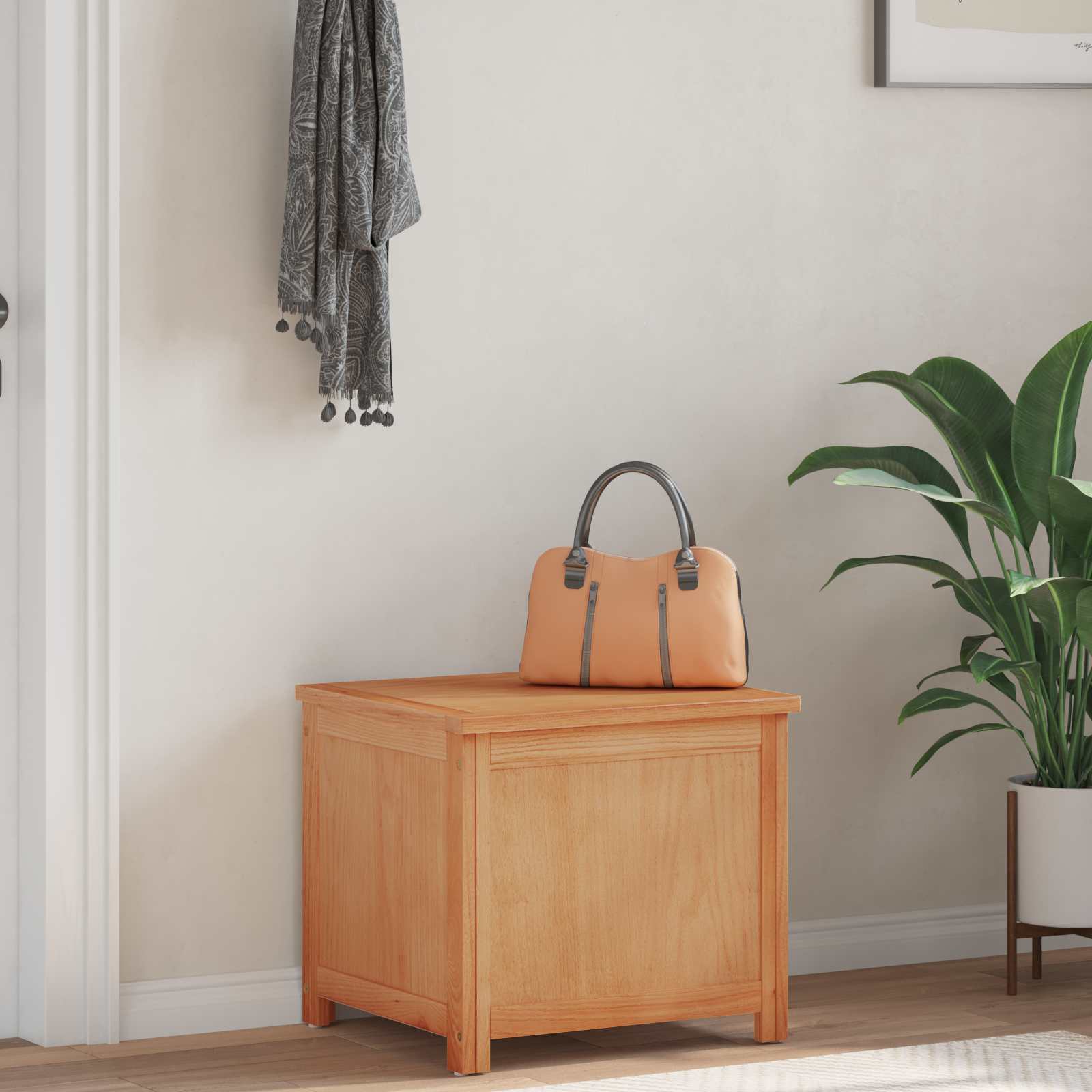 Diese coole Aufbewahrungsbox ist die perfekte Lösung, um Ordnung zu halten. Sie sieht nicht nur gut aus, sondern macht auch in jedem Raum eine gute Figur – egal ob im Wohnzimmer oder Schlafzimmer. Ihre schlichte rechteckige Form und die glatte Oberfläche sorgen für einen modernen Look und das schöne Braun passt zu vielen Einrichtungsstilen. Geräumig und super praktisch, ist sie ein Must-Have für jedes moderne Zuhause, das Wert auf Stil und Funktion legt. Materialien: Diese Box besteht aus hochwertigem MDF mit einer glatten, strapazierfähigen Oberfläche und einem schlichten Furnier. Das sorgt für Langlebigkeit und einen modernen Look, der sowohl schick als auch praktisch ist. Inklusive Komponenten: Die Box hat eine schöne Rückseite, sodass du sie problemlos im Raum aufstellen kannst. Die Holzbeine geben Stabilität und werten das Design auf. Sie eignet sich ideal für dekorative Aufbewahrung im Wohnbereich oder zur praktischen Organisation im Schlafzimmer. Eigenschaften /Funktion /Design: Ihr modernes Design besticht durch Einfachheit und Funktionalität, mit klaren Linien und ohne viel Schnickschnack. Der großzügige Stauraum reicht für alles, von Wäsche bis hin zu Spielzeug und Büchern. Eine super Lösung für die Organisation. Empfohlene Verwendung: Diese Box ist ideal für Apartments und Familienhaushalte. Sie passt sowohl in traditionelle als auch in moderne Räume und erhöht die Funktionalität in Wohnzimmer und Schlafzimmer, wo Style und Stauraum gefragt sind. Pflege und Wartung: Halte die Box in Topform, indem du sie mit einem feuchten Lappen abwischst und starke Chemikalien vermeidest. So bleibt sie über die Jahre schön und nützlich in deinem Raum.