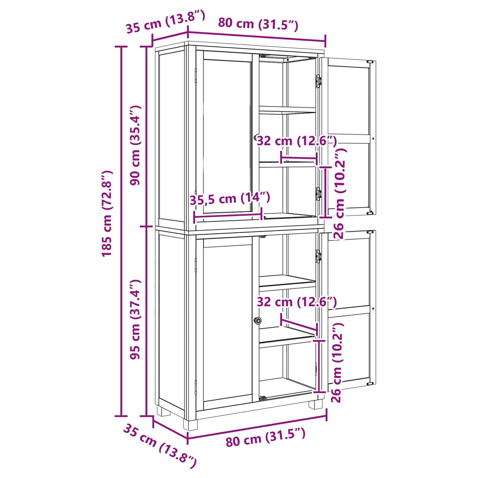 - Gesamtabmessungen: 80 x 35 x 185 cm (L x B x H)