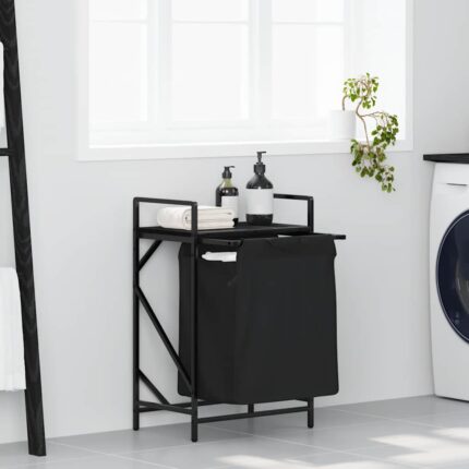 Wäschekorb 1 Fach mit Ablage Schwarz Eichen-Optik