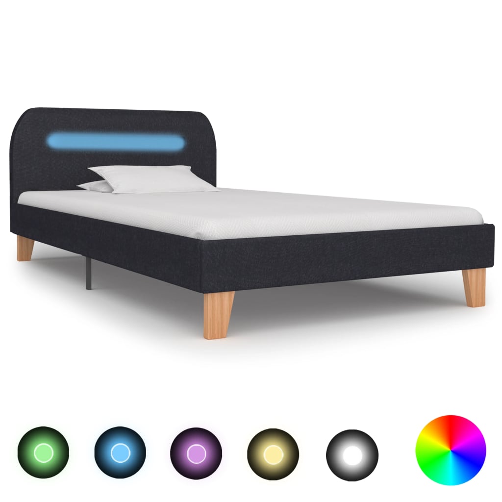 Bettgestell mit LED Dunkelgrau Stoff 180×200 cm