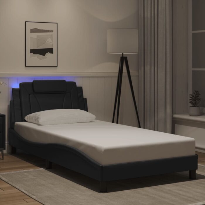 Dieses Bettgestell mit LED-Leuchten sorgt für eine erholsame Nachtruhe! Es stellt eine einladende Ergänzung zu jedem Schlafzimmer dar. Langlebiges Kunstleder: Hochwertiges Kunstleder ist ein äußerst langlebiges Material. Es ist schmutzabweisend und lässt sich mit einem feuchten Tuch einfach reinigen. Durch die glatte Oberfläche weist es die Schönheit von Echtleder und einen luxuriösen Look auf.Sperrholzlatten: Die Sperrholzlatten sorgen für eine gute Gewichtsverteilung und auch dafür, dass die Matratze bei jeder Bewegung deines Körpers während des Schlafes an Ort und Stelle bleibt.Hervorragende Unterstützung: Das Bett-Kopfteil bietet dir eine hervorragende Unterstützung, während du im Bett sitzt, um zu lesen oder fernzusehen.Bunter LED-Streifen: Die farbenfrohen LED-Leuchten bringen das Schlafzimmer zum Leuchten! Die Klettverschlüsse auf der Rückseite des Kopfteils können zur Befestigung der LED-Leuchten verwendet werden.Wellenförmiges Seitendesign: Das stilvolle und raffinierte Design in Wellenform verleiht deiner Einrichtung eine moderne und elegante Note und macht das Bettgestell zum Mittelpunkt deines Schlafzimmers. Gut zu wissen:Bei diesem Bett ist keine Matratze im Lieferumfang enthalten. Wir bieten jedoch eine große Auswahl an Matratzen an. Du kannst in unserem Shop nach einer passenden Matratze suchen.Das Produkt verfügt über einen USB-Anschluss, für den eine zertifizierte 5V-USB-Stromquelle erforderlich ist (nicht im Lieferumfang enthalten).