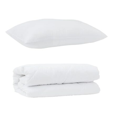 Bettdecken Set mit Kissen 2 pcs Weiss Mikrofaser