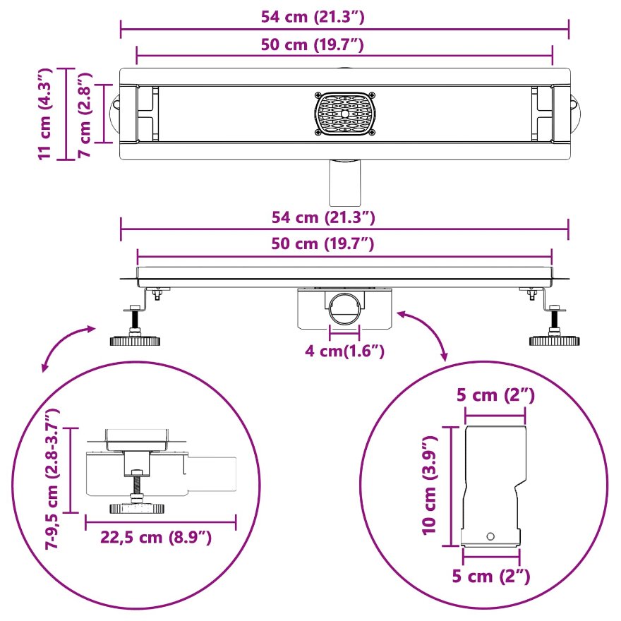 Dieser moderne Duschablauf ist ein Must-Have für alle, die ihr Badezimmer stylish und praktisch aufwerten wollen. Aus robustem Edelstahl gemacht, passt das schlanke Design perfekt zu verschiedenen Badstilen und macht den Wasserabfluss super effektiv. Perfekt für moderne Badezimmer bringt dieser Duschablauf nicht nur einen tollen Look, sondern sorgt auch für zuverlässigen Abfluss in jedem Setting. Materialien: Der Duschablauf besteht aus Edelstahl 304, der für seine hervorragende Beständigkeit bekannt ist. Dieses Material hält noch nach langer Nässe, sodass der Ablauf immer gut aussieht. Seine robuste Bauweise verhindert Verformungen und Abnutzung im Lauf der Zeit, was ihn zur besten Wahl für jede Dusche macht. Enthaltene Komponenten: Im Set findest du alles, was du für die Montage brauchst: einen praktischen Haken für einfaches Anbringen und Abnehmen, ein wasserdichtes Tuch, um Lecks zu verhindern, und zwei höhenverstellbare Füße für die perfekte Ausrichtung. Jede Komponente arbeitet optimal zusammen und macht die Installation kinderleicht. Verstellbare Eigenschaften: Das höhenverstellbare Design erlaubt dir, die Höhe des Ablaufs zwischen 0-30 mm einzustellen. Das bietet dir mega Flexibilität, um die besten Ergebnisse für unterschiedliche Duschböden zu erreichen, damit das Wasser effektiv abgeleitet wird und es keinen stillstehenden Wasser gibt. Funktionales modernes Design: Die rechteckige Form und der moderne Stil passen super zu aktuellen Badezimmern und geben deinem Raum einen sauberen, frischen Look. Sein schlichtes Design ist nicht nur schön, sondern auch sehr funktional und ergänzt viele Dusch-Setups und Dekore. Pflege & Wartung: Die Pflege des Ablaufs ist ganz einfach. Mit ein bisschen schonendem Reiniger kannst du sein Aussehen erhalten und dafür sorgen, dass der Wasserfluss gut bleibt. Vermeide starke Chemikalien, um die Lebensdauer des Ablaufs zu verlängern und sein schlankes Aussehen zu bewahren.