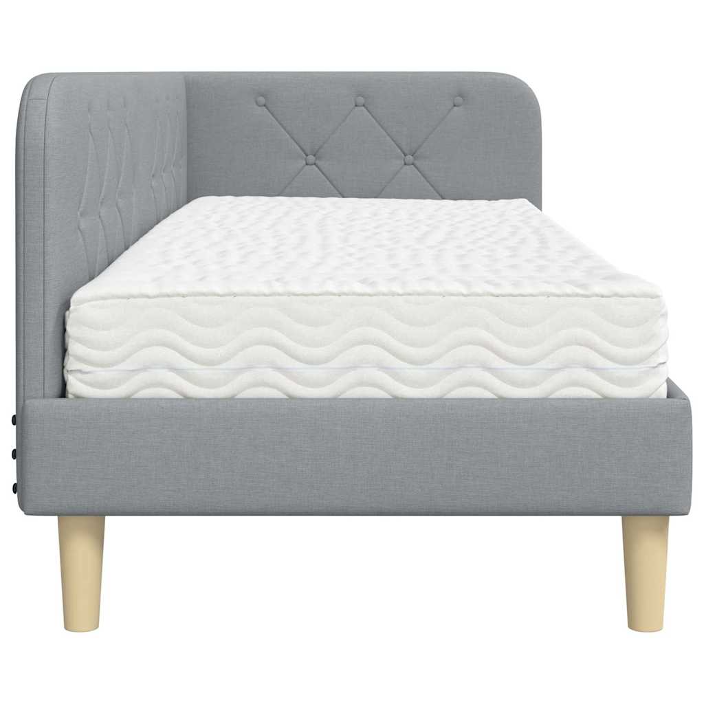 Eckbettgestell mit Matratze Hellgrau 80 x 200 cm Stoff