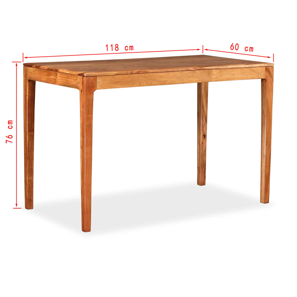 Dieser Esstisch aus Holz strahlt einen rustikalen Charme aus und ist eine tolle Ergänzung für Ihre Küche oder Ihr Esszimmer. Der Schreibtisch ist aus massivem Akazienholz gefertigt, das durch Polieren, Malen und Lackieren ein edles Aussehen erhält. Dieser Tisch ist komplett handgefertigt und die schönen Holzmaserungen machen jedes Möbelstück einzigartig, jedes Stück ist ein Unikat. Die Montage ist einfach. Wichtiger Hinweis: Die Farben variieren von Stück zu Stück, dadurch wird jedes Möbelstück zum Unikat; die Lieferung erfolgt nach dem Zufallsprinzip.