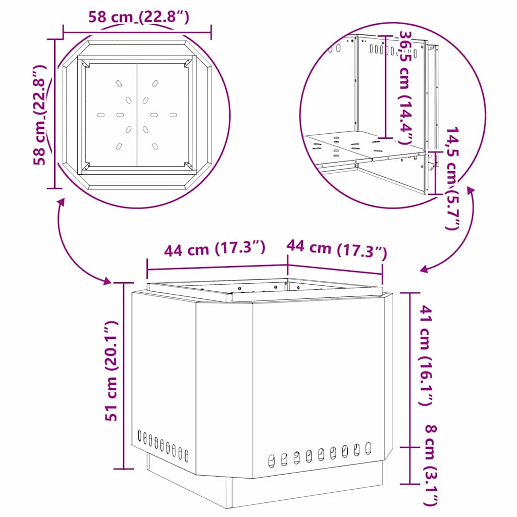 • Gesamtabmessungen: 58 x 58 x 51 cm (L x B x H)