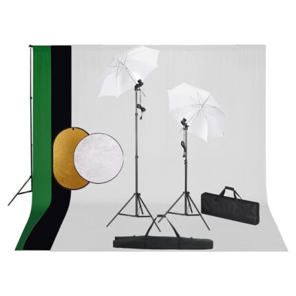 Fotostudio-Set mit Leuchten, Schirmen, Hintergrund, Reflektor