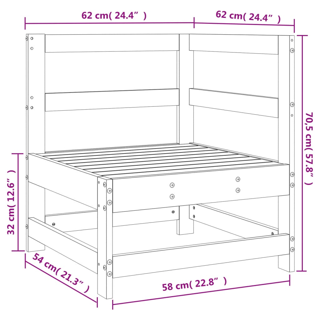 Dieses Garten-Ecksofa aus Holz, das sich durch sein Latten-Design auszeichnet, ist eine tolle Ergänzung zu deinem Garten, Innenhof oder deiner Terrasse, um gemütliche Stunden mit deiner Familie oder deinen Freunden zu verbringen. Massives Kiefernholz: Massives Kiefernholz ist ein wunderschönes Naturmaterial. Kiefernholz weist eine gerade Maserung auf und die Aststellen verleihen dem Material seine charakteristische, rustikale Optik.Bequemes Sitzerlebnis: Die Rückenlehne sorgt für zusätzlichen Sitzkomfort auf dem Gartensofa.Modulares Design: Das modulare Sofa lässt sich flexibel und einfach umstellen. Du kannst es mit anderen modularen Sofa-Elementen aus unserem Webshop kombinieren, um dein ganz persönliches Garten-Lounge-Set zusammenzustellen! Gut zu wissen:Damit deine Gartenmöbel lange schön bleiben, empfehlen wir dir, sie mit einer wasserdichten Hülle zu schützen.