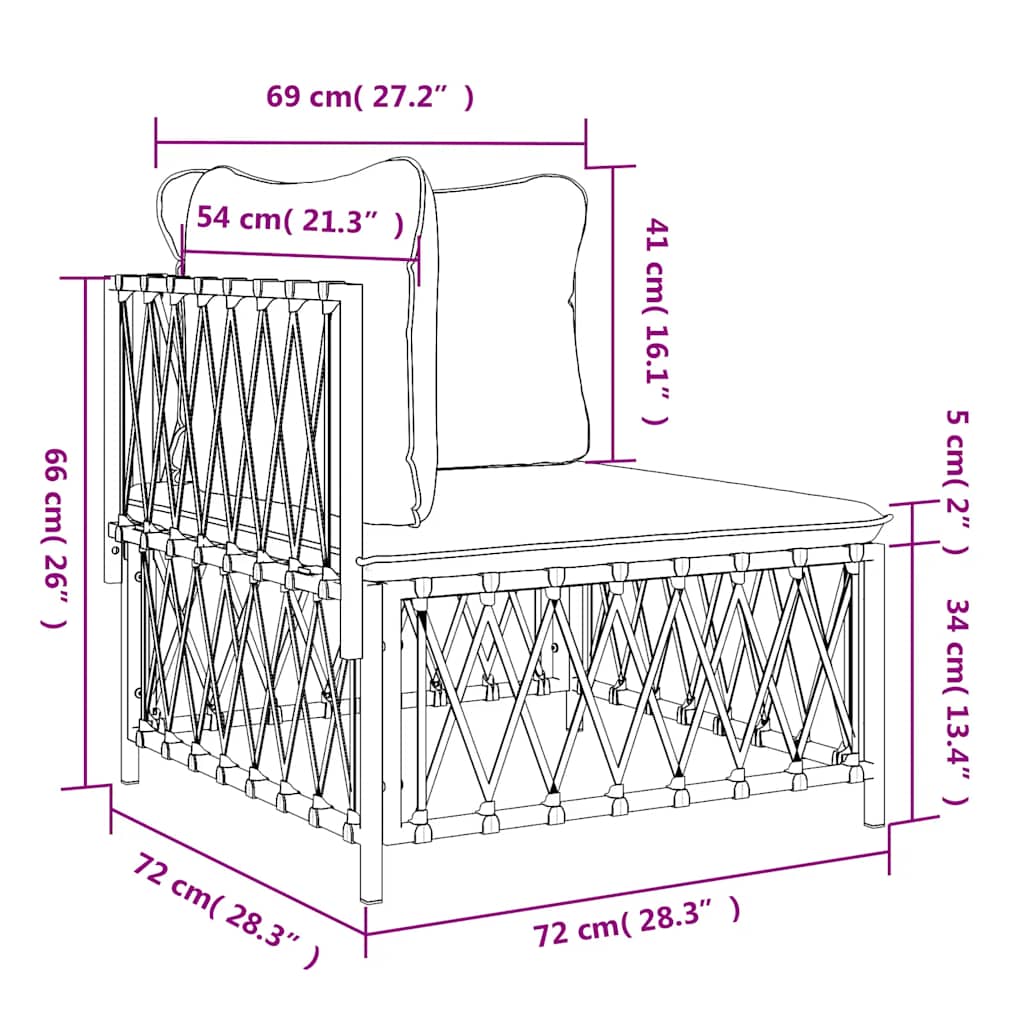 Garten-Mittelsofa mit Kissen Weiss Gewebe