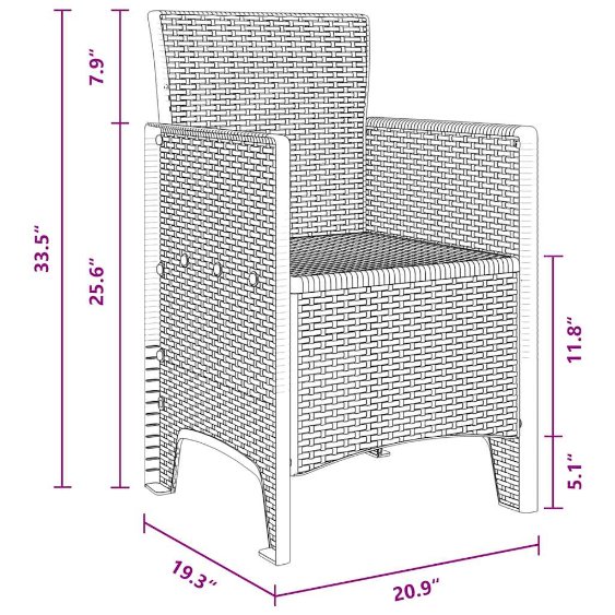 Dieses Outdoor-Dining-Set hat ein ergonomisches Design und verbindet die Einfachheit sowie Funktionalität moderner Möbel mit dem Charme des Essens im Freien. Es ist für den Garten und die Terrasse gedacht und lädt Familie und Freunde ein, die warmen Sommertage draußen zu genießen. Die rechteckige Form und die matte Oberfläche verleihen dem Außenbereich einen schicken Touch. Dank des ergonomischen Designs sitzt man bequem, was ideal für lange Gespräche und entspannte Essen an sonnigen Tagen ist. Mit seinem modernen Poly-Rattan-Stil wird es sofort zum Blickfang in deinem Garten. Poly-Rattan-Bau Das gesamte Set ist aus hochwertigem Poly-Rattan und hält viel aus. Die moderne Textur sieht gut aus und sorgt für Stabilität beim Essen im Freien. Die matte Oberfläche bringt Eleganz und passt perfekt zur Natur. Komplette Komponenten Das Set hat Rückenlehnen, Armlehnen, Beine und Oberflächen aus Poly-Rattan, wo alles Komfort und Stabilität bietet. Die flachen Armlehnen unterstützen gut, und die robusten Beine sorgen dafür, dass das Set auf allen Oberflächen steht. Jedes Detail ist durchdacht, damit du draußen richtig gut essen kannst. UV-beständige Eigenschaften Das Set ist mit UV-beständigen Materialien ausgestattet, die die schädlichen Sonnenstrahlen abhalten. So bleibt das Set auch bei starker Sonne schön und funktional. Dies ist wichtig, damit es über die Sommermonate hinweg gut aussieht. Vielseitige Nutzung im Freien Perfekt für intime Treffen auf der Terrasse oder im Garten, bringt die moderne Eleganz des Sets mehr Stil in deinen Außenbereich. Sein ergonomisches Design passt sich an verschiedene Nutzer an und macht es einfach, gemütliche Abendessen oder festliche Anlässe zu planen. Pflegeleichtigkeit Verschönere deinen Außenbereich mit diesem pflegeleichten Poly-Rattan-Dining-Set. Benutze eine Abdeckung, wenn es nicht in Gebrauch ist, um es zu schützen, und das Set bleibt bei minimalem Aufwand lange schön.