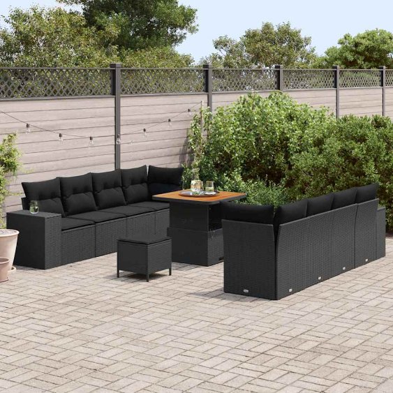 Gartensofa-set mit Kissen 11 pcs Schwarz Poly-Rattan