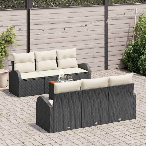 Gartensofa-set mit Speicher 7 pcs Schwarz und Creme Poly-Rattan